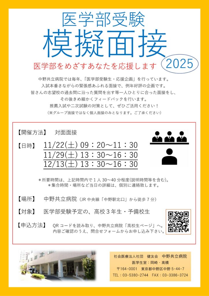 今年も…医学部受験生応援企画「医学部模擬面接」行います!受付はじめました♪